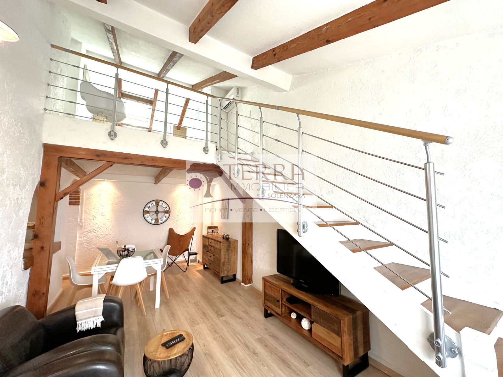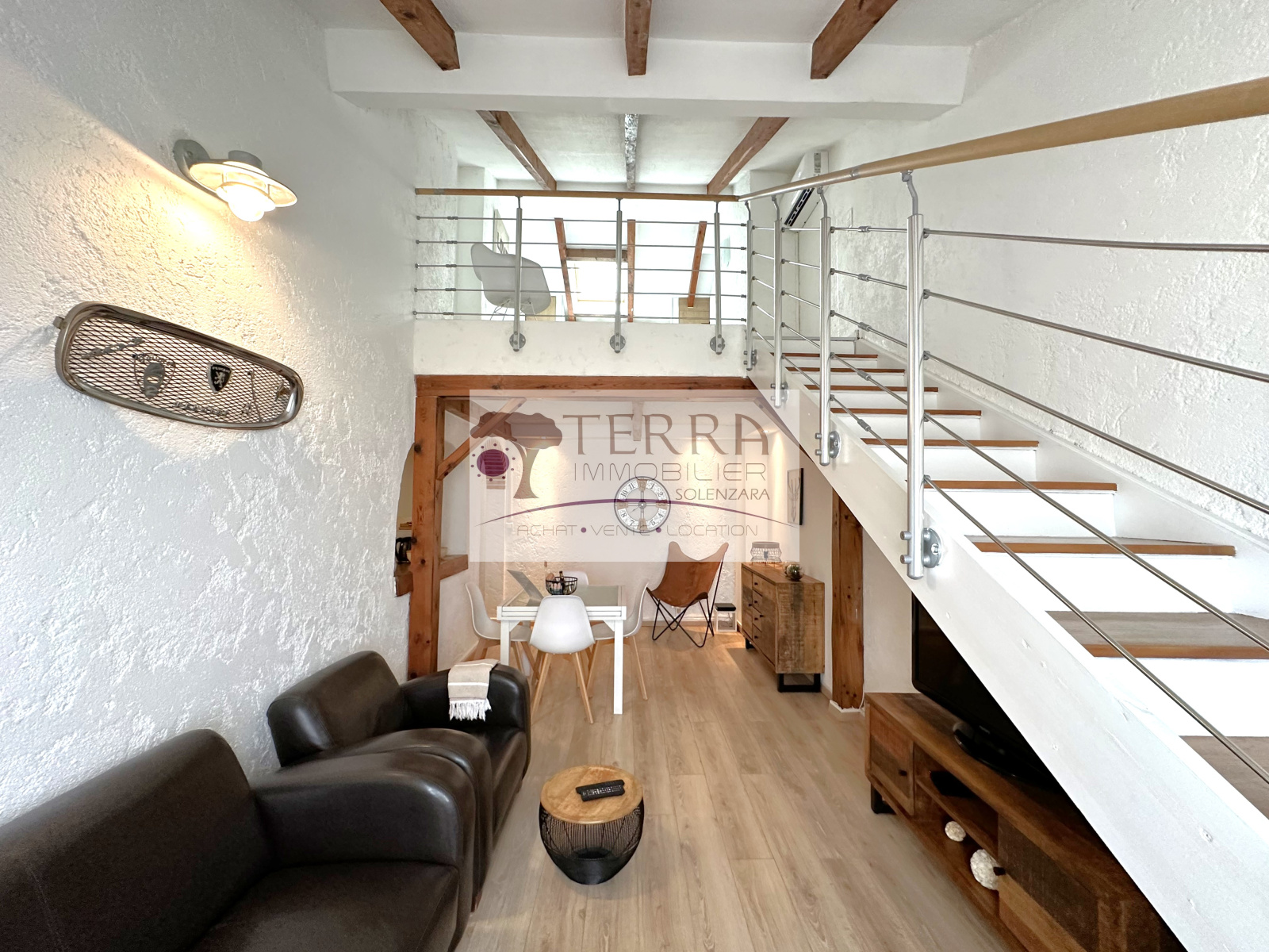 Il est composé, d'une entrée, d'une cuisine, d'une chambre avec placard, d'un salon/séjour. A l'étage, une vaste chambre et une magnifique salle de bains/wc.