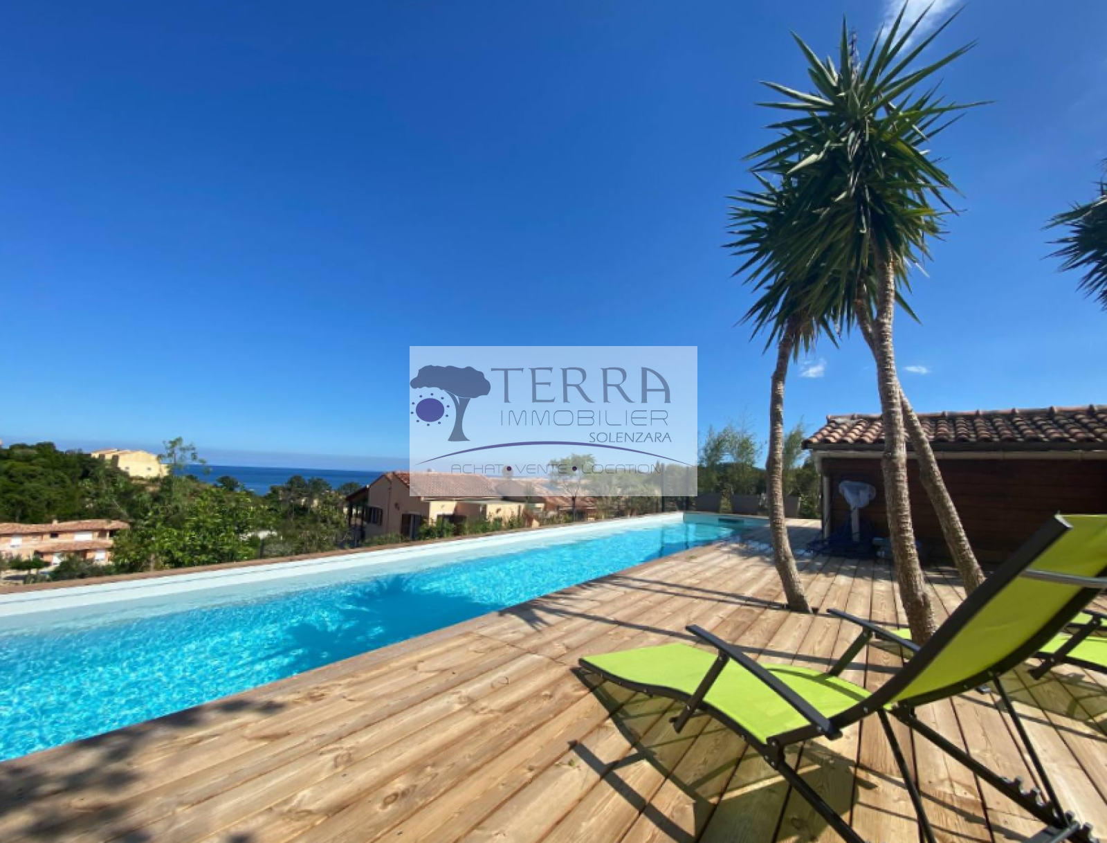 Terra Immobilier Solenzara, vous propose à la vente, sur la commune de Solenzara, hameau de Favone, une maison vue mer avec piscine d'une superficie d'environs 450 m² composée de 7 appartements sur 2 niveaux. Plage à pied à 600 m.