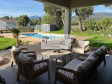 Depuis 2023, une piscine au sel et chauffée agrémente la partie Sud-Ouest du terrain, entièrement clôturé, arboré et offrant une belle vue montagne.