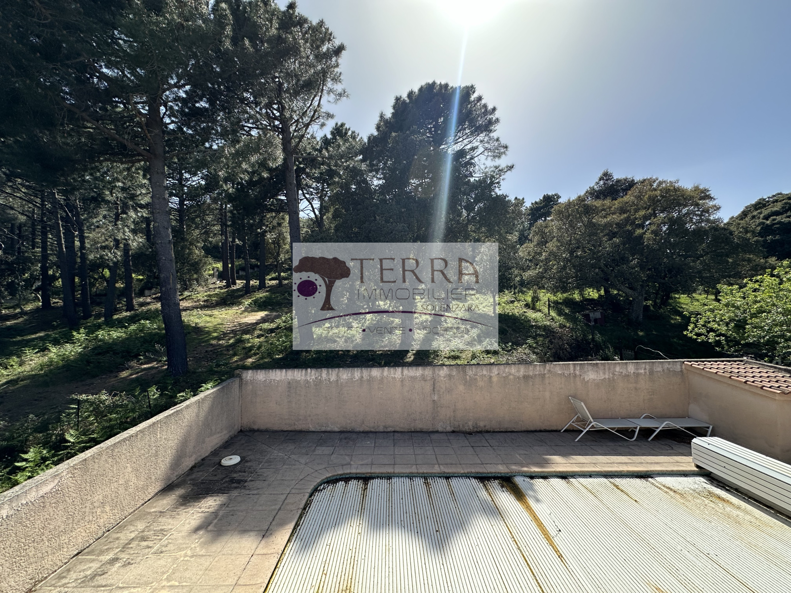 Terra Immobilier Solenzara, vous propose à la vente en exclusivité sur la commune de SOLARO village, une maison de type T4 de 140 m², sise sur un terrain de 427 m², composée de :